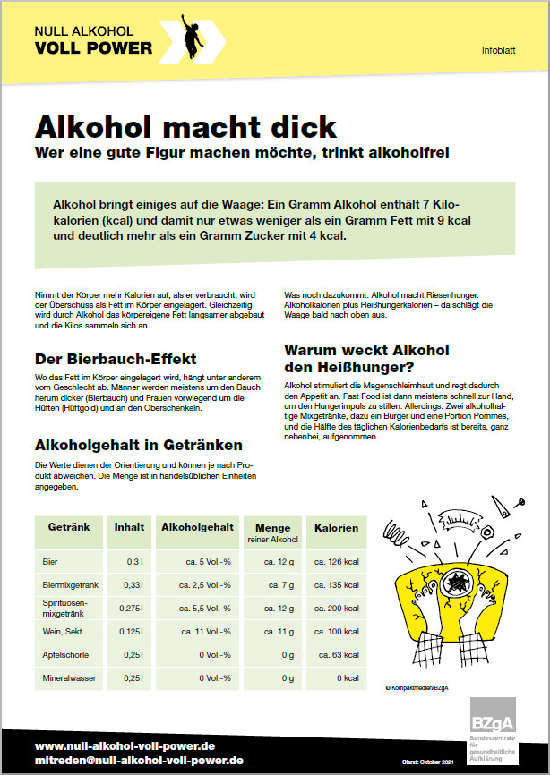 Infoblatt: Alkohol macht dick