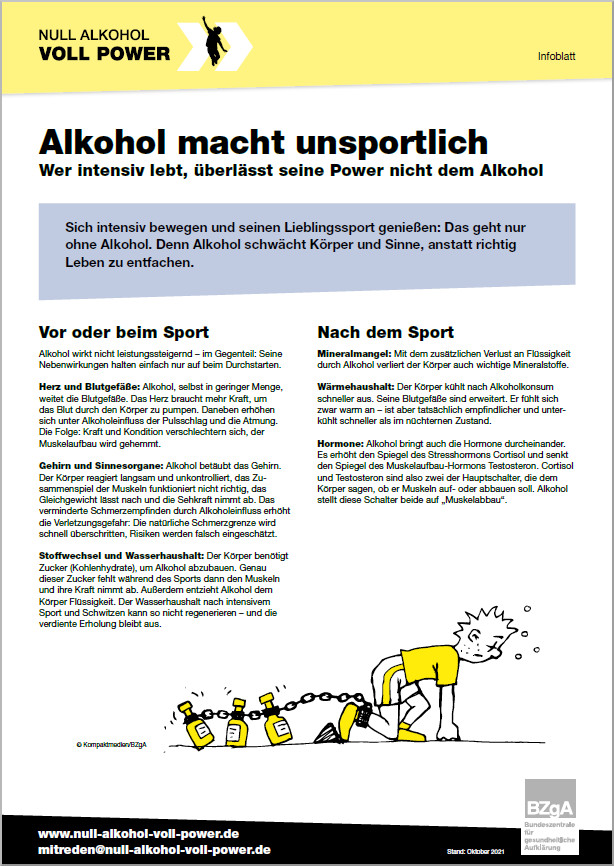 Infoblatt: Alkohol macht unsportlich