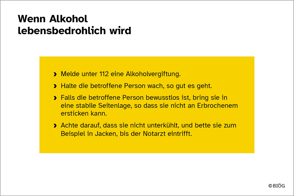 Hier ist aufgelistet, was bei Menschen mit Alkoholvergiftung unbedingt zu tun ist.